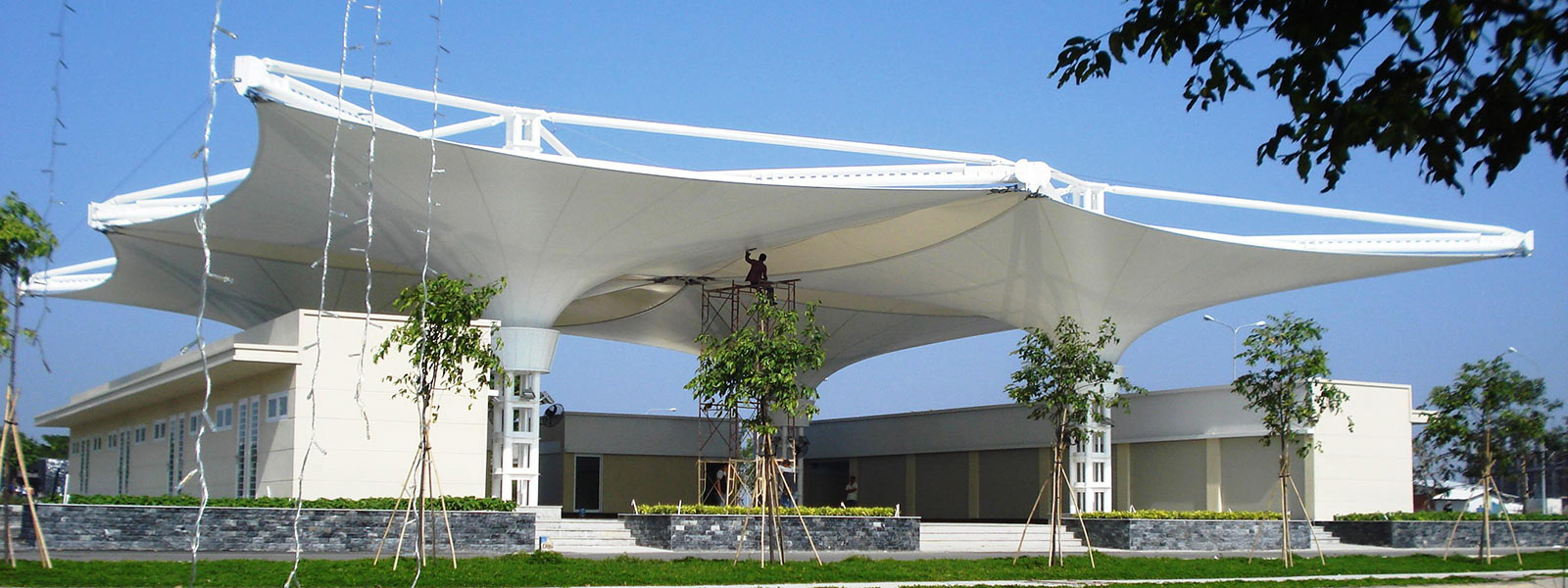 公司開發(fā)的膜結構建筑風格獨特,藝術性強,具有濃厚的現代氣息,廣泛應用于體育場館、高速公路收費站、加油站、大型停車場、博覽會展廳、公共場所、休閑場所、景區(qū)裝飾等。